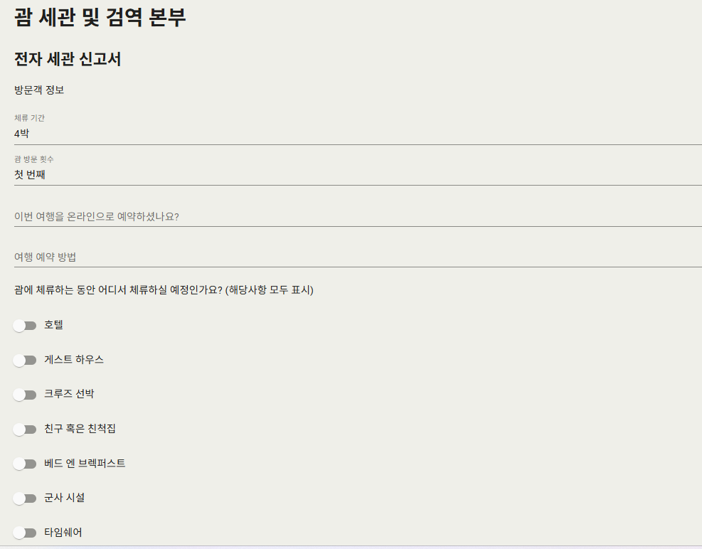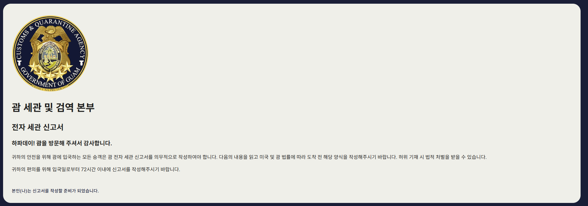 괌 여행전 필수 서류 2가지 중 나머지 하나인 전자세관신고서를 작성해 볼께요
