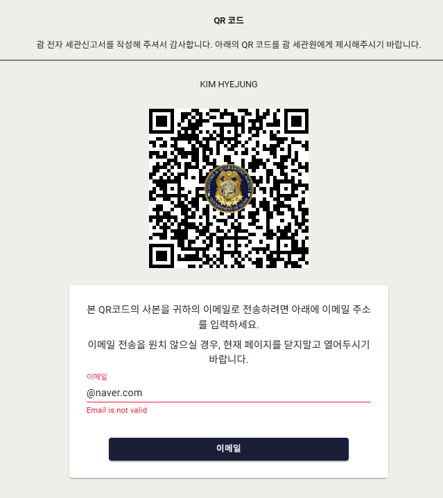 6. 다하고 나면 이렇게 QR코드가 나오는데 이메일 주소를 입력하면 메일로 와요~