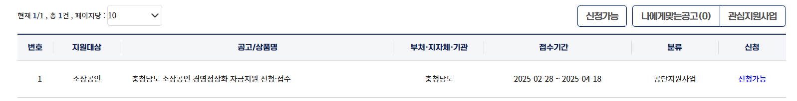 - 공고일(2025.02.28) 기준 충청남도 사업장을 운영 중인 소상공인